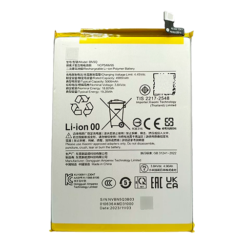 Batería XIAOMI BN5Q se destaca por su rendimiento inigualable. Con una capacidad óptima, ésta batería te brinda una duración excepcional. Ya sea que estés navegando por la web, jugando a tus juegos favoritos o utilizando aplicaciones intensivas, esta batería te mantendrá alimentado durante todo el día. Olvídate de cargar tu dispositivo constantemente; con esta batería, disfrutarás de una autonomía excepcional.